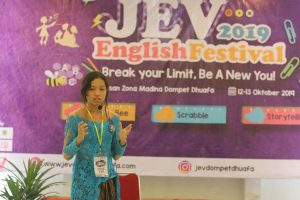 ZONA MADINA.COM _ Jampang English Village (JEV) kembali menggelar acara JEV English Festival 2019 acara yang dimulai sejak Pukul 08.00 berlangsung selama 2 hari (12-13) di Kawasan Zona Madina Dompet Dhuafa, Kemang Kabupaten Bogor, Jawa Barat.Sarkiah selaku kordinator JEV mengatakan acara ini merupakan event tahunan kami yang bertujuan untuk mengasah kemampuan anak dalam berbahasa inggris dan membangun rasa percaya diri dalam berkompetisi secara positif.
